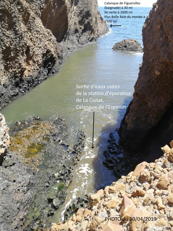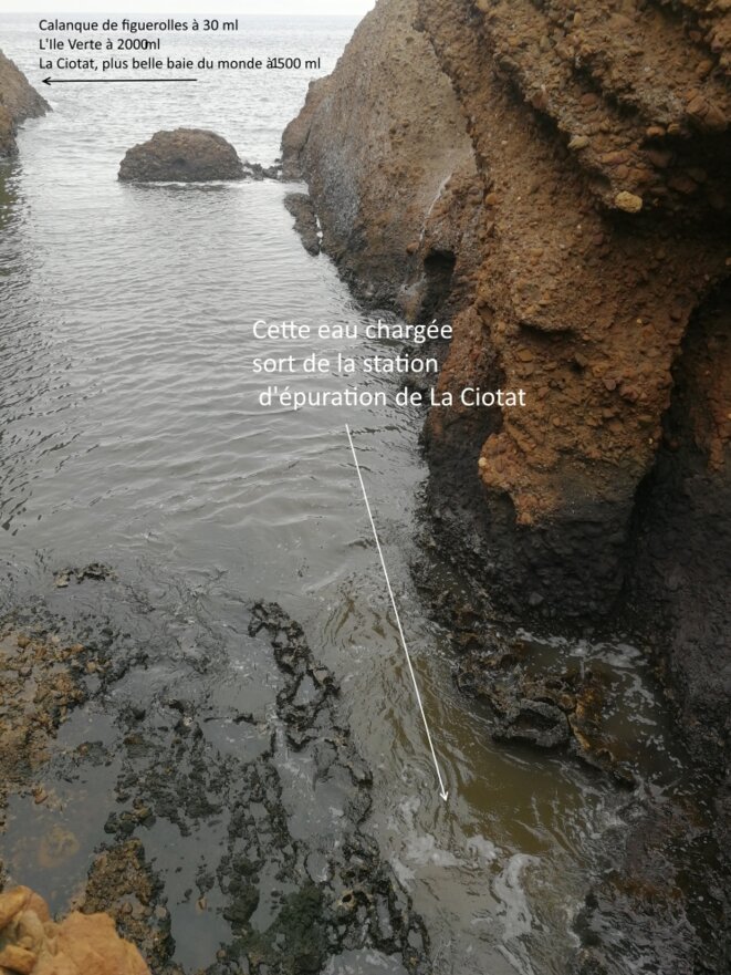 En 2014, un groupe de Kayakistes partis du port de La Ciotat s’aventure à l’ouest vers la calanque de Figuerolles voisine. Ils la contournent pour continuer vers l’ouest, font une trentaine de mètres et tombent sur une faille naturelle dans la roche au bout de laquelle se déversent les eaux issues de la station d’épuration de La Ciotat. La scène est « dantesque » au point que la personne qui filme ne peut pas imaginer que ce qu’elle voit vient d’une station d’épuration. La vidéo est ici.