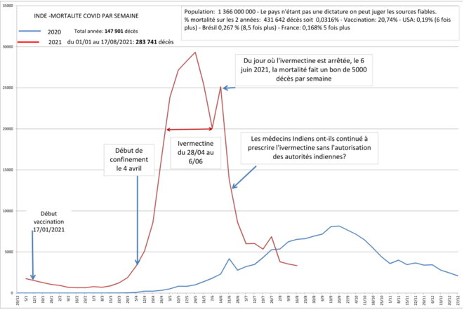 Un bon nombre de médecins utilisent en France une panoplie importante de médicaments en fonction des particularités des patients concernés. L’ivermectine est un des plus utilisé car il peut être prescrit pour soigner des symptômes relativement répandus ce qui permet aux praticiens de moins apparaître dans la « dissidence ». Il faut donc éviter d’en donner une liste exhaustive afin de maintenir leur « anonymat » le plus longtemps possible pour qu’ils puissent sauver un maximum de gens. Si pour certains ils auront agi comme un placébo, il semble que pour l’Inde ce ne soit pas le cas.